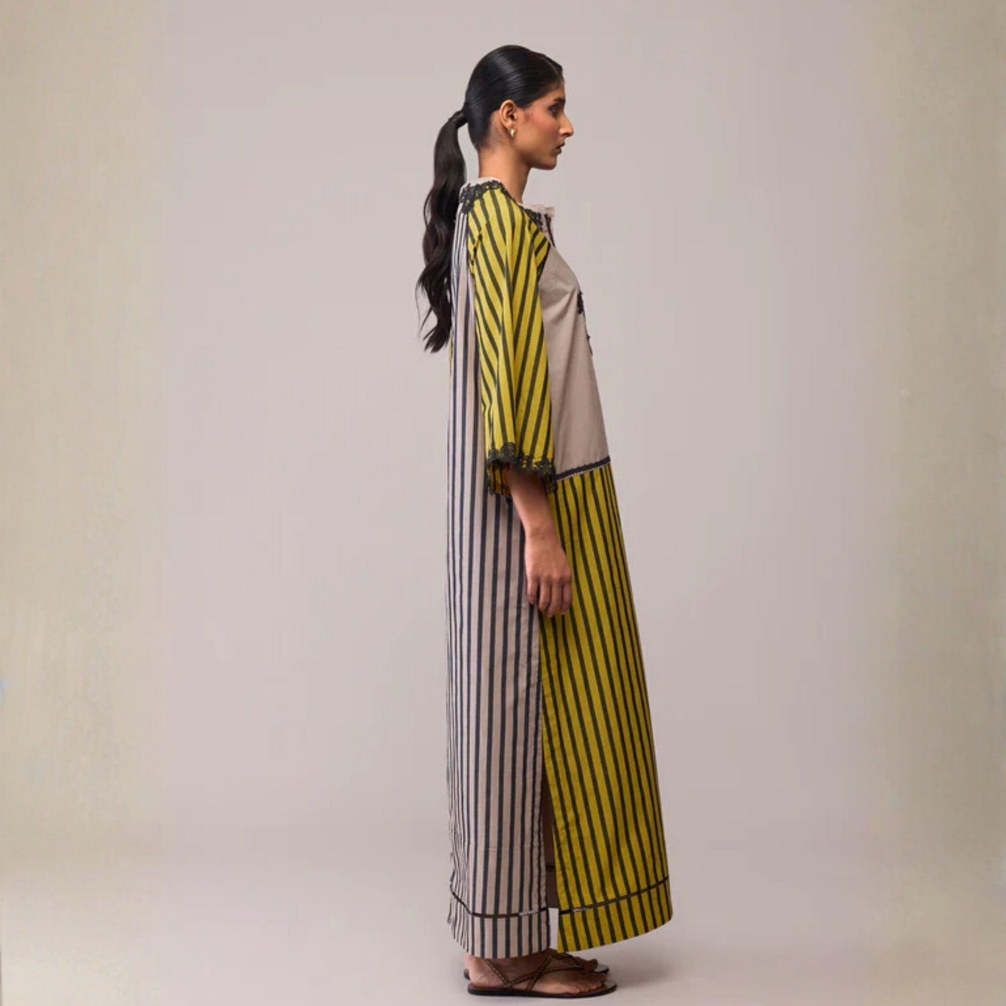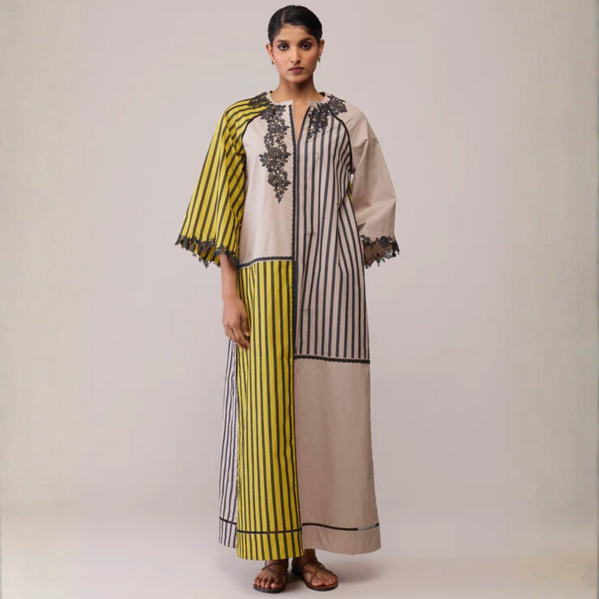 NEESA - MUSTARD & BEIGE MAXI DRESS