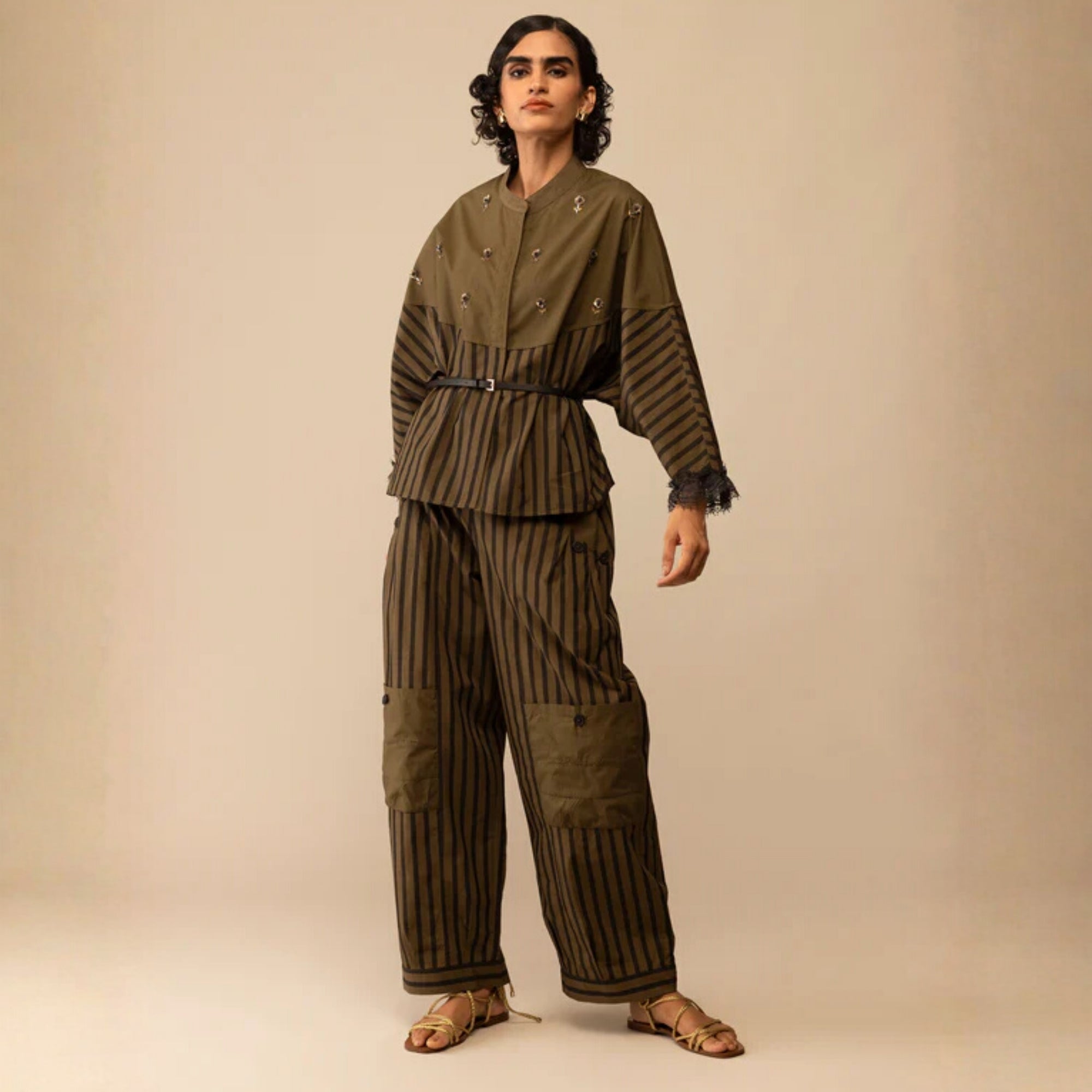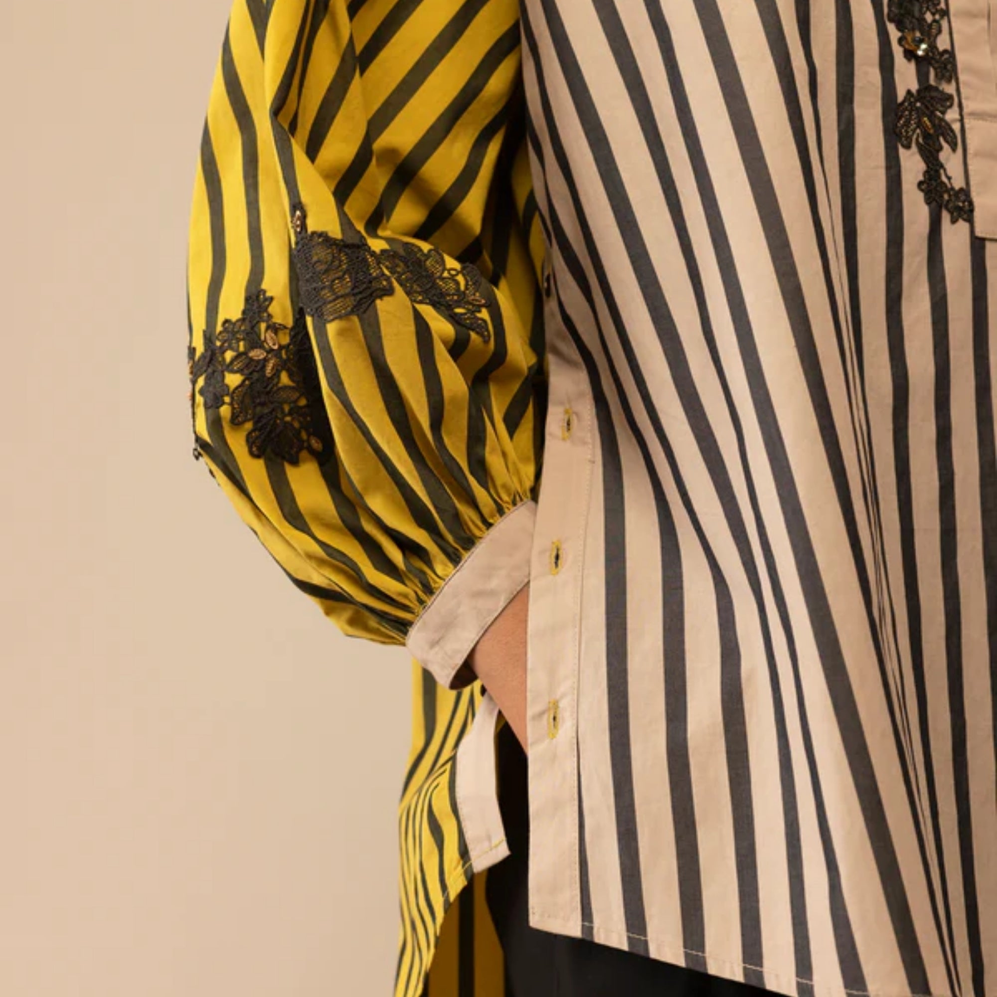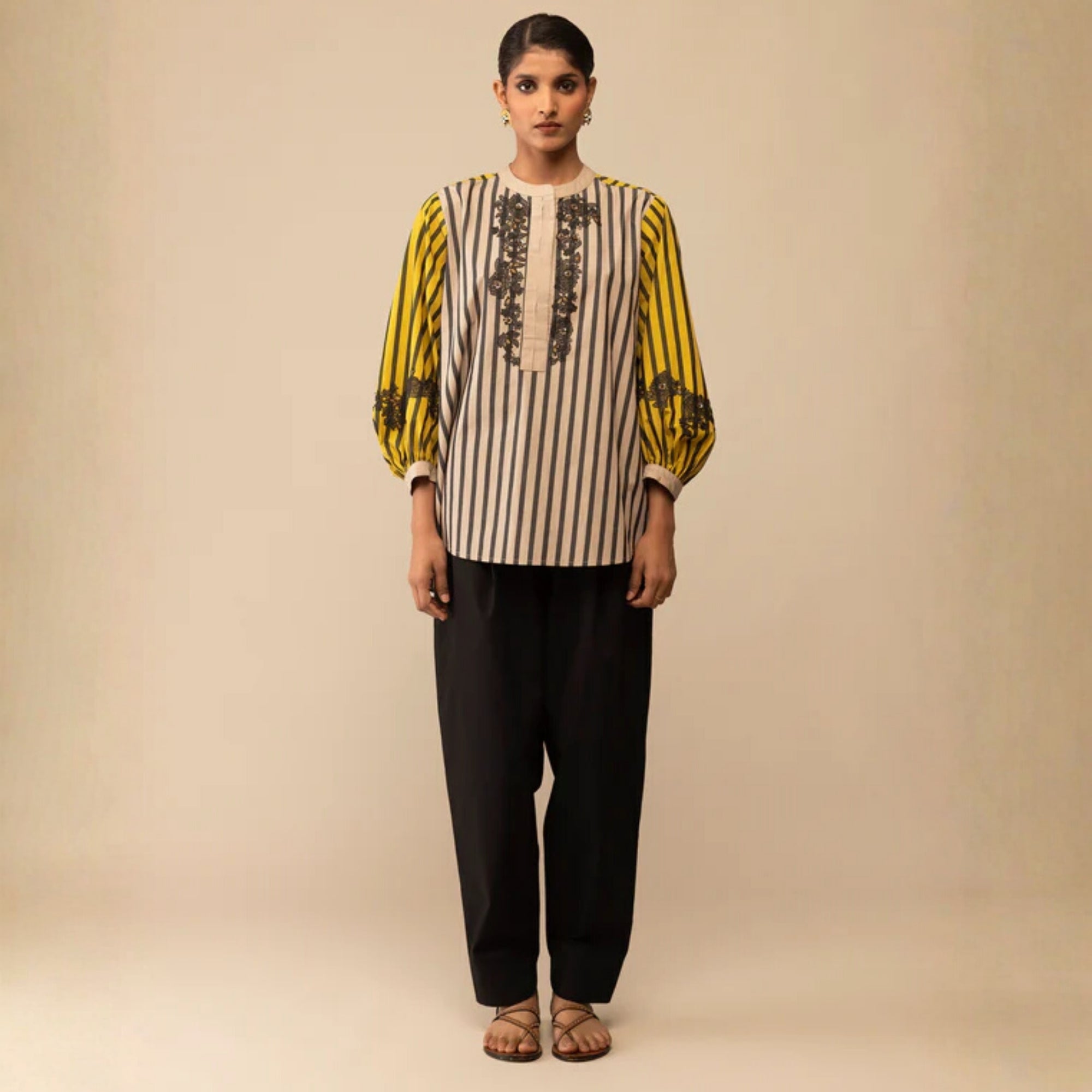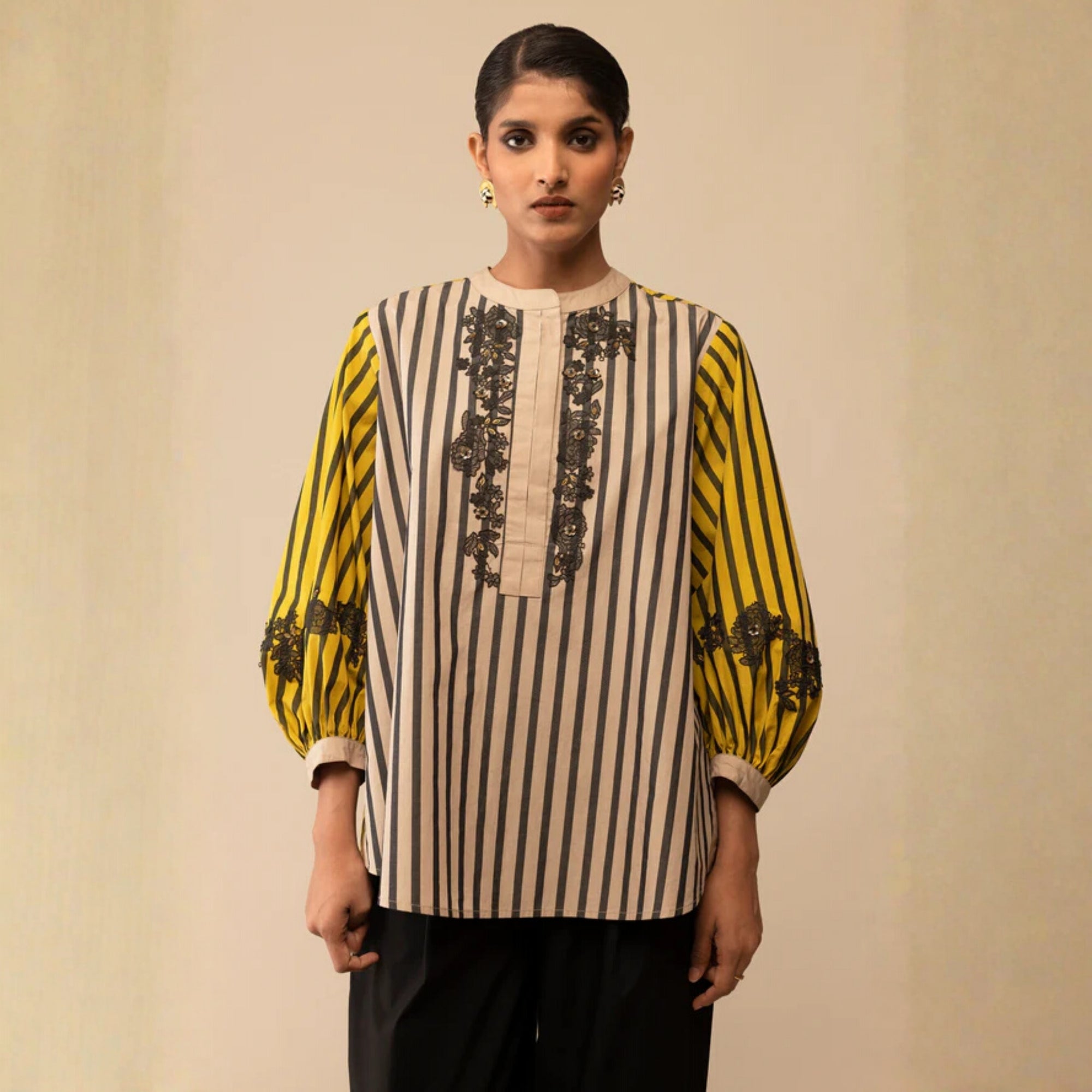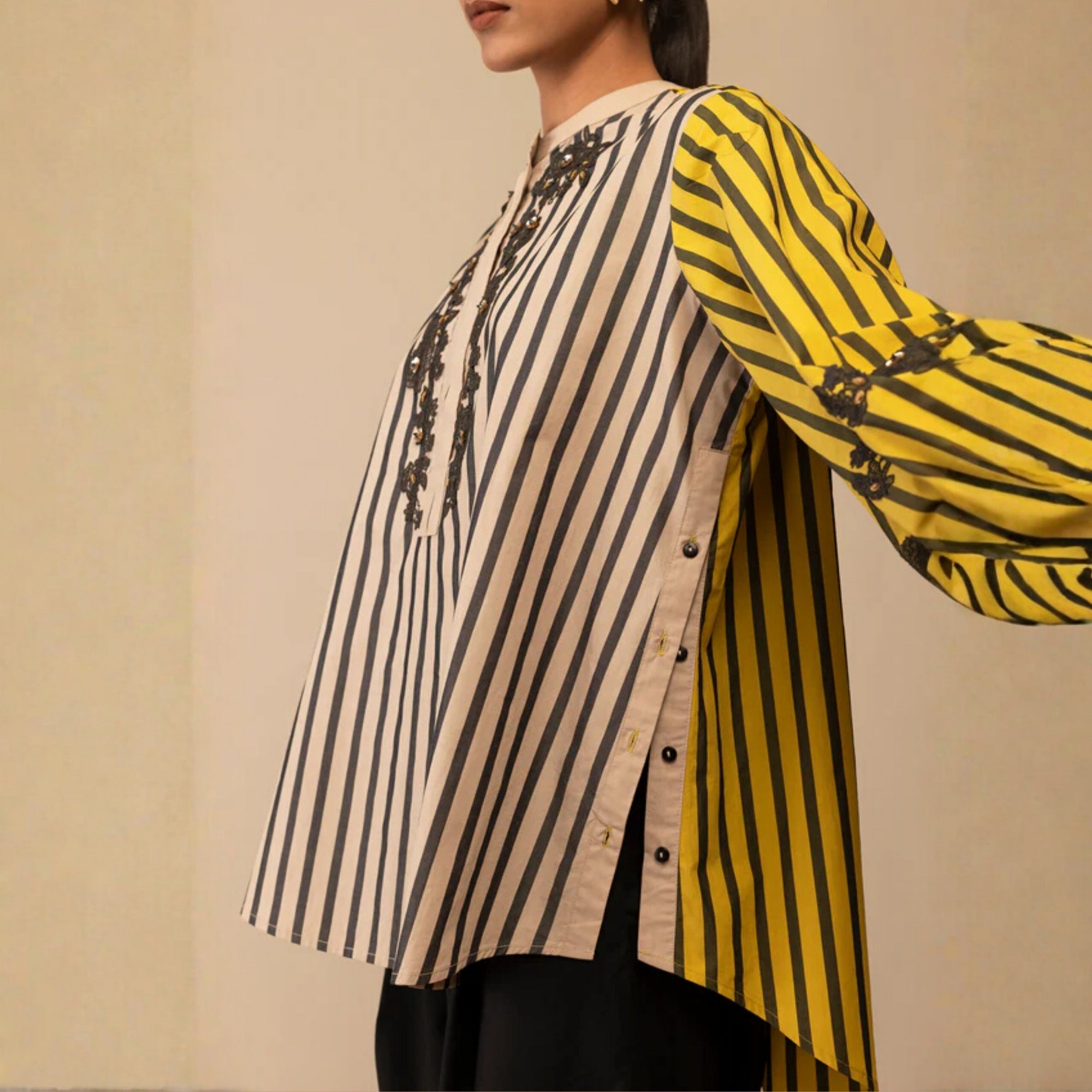 ASHA - MUSTARD AND BEIGE SHIRT