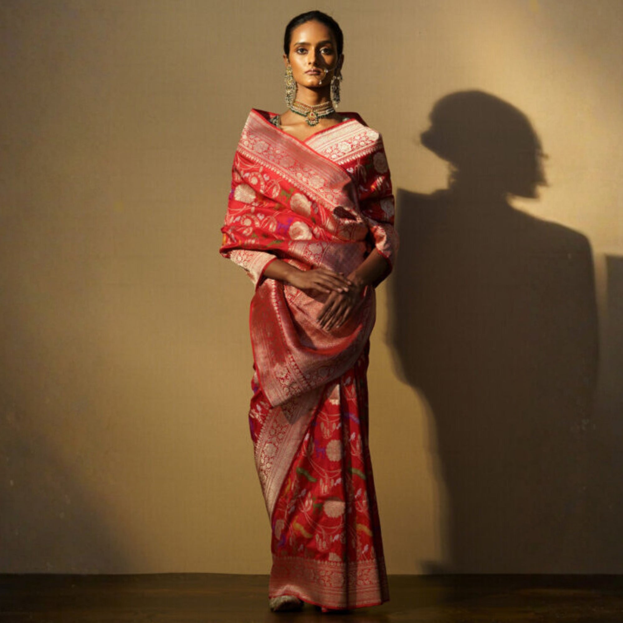 Sari Silk Shikargha Red Multi Mina