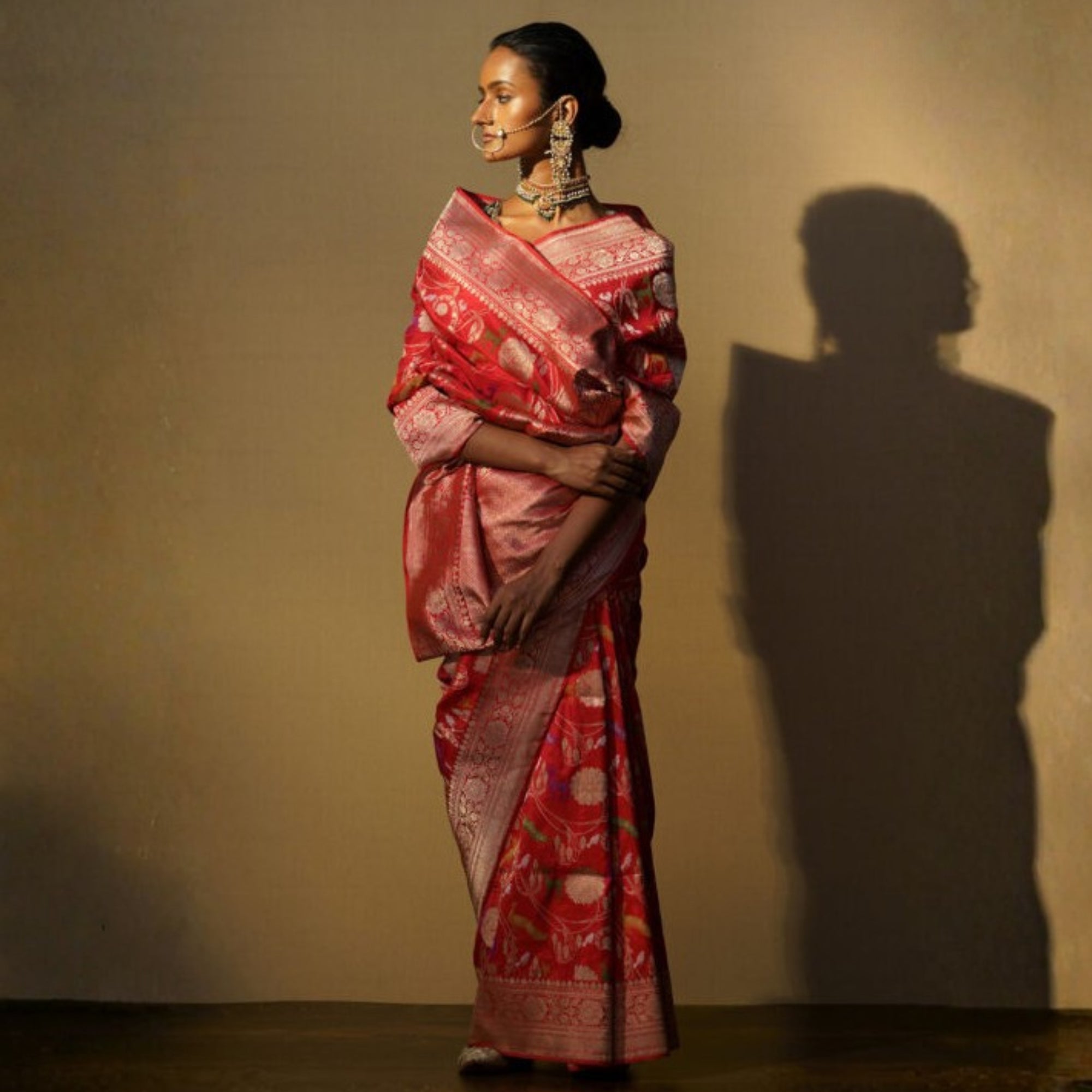 Sari silk shikarga red multi mina kadhuan